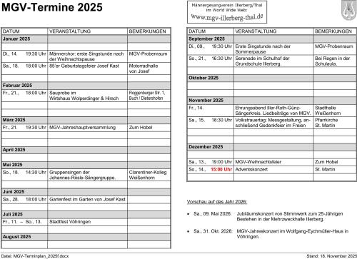 - - - Jahres-Terminplan - - - Jahres-Terminplan - - -